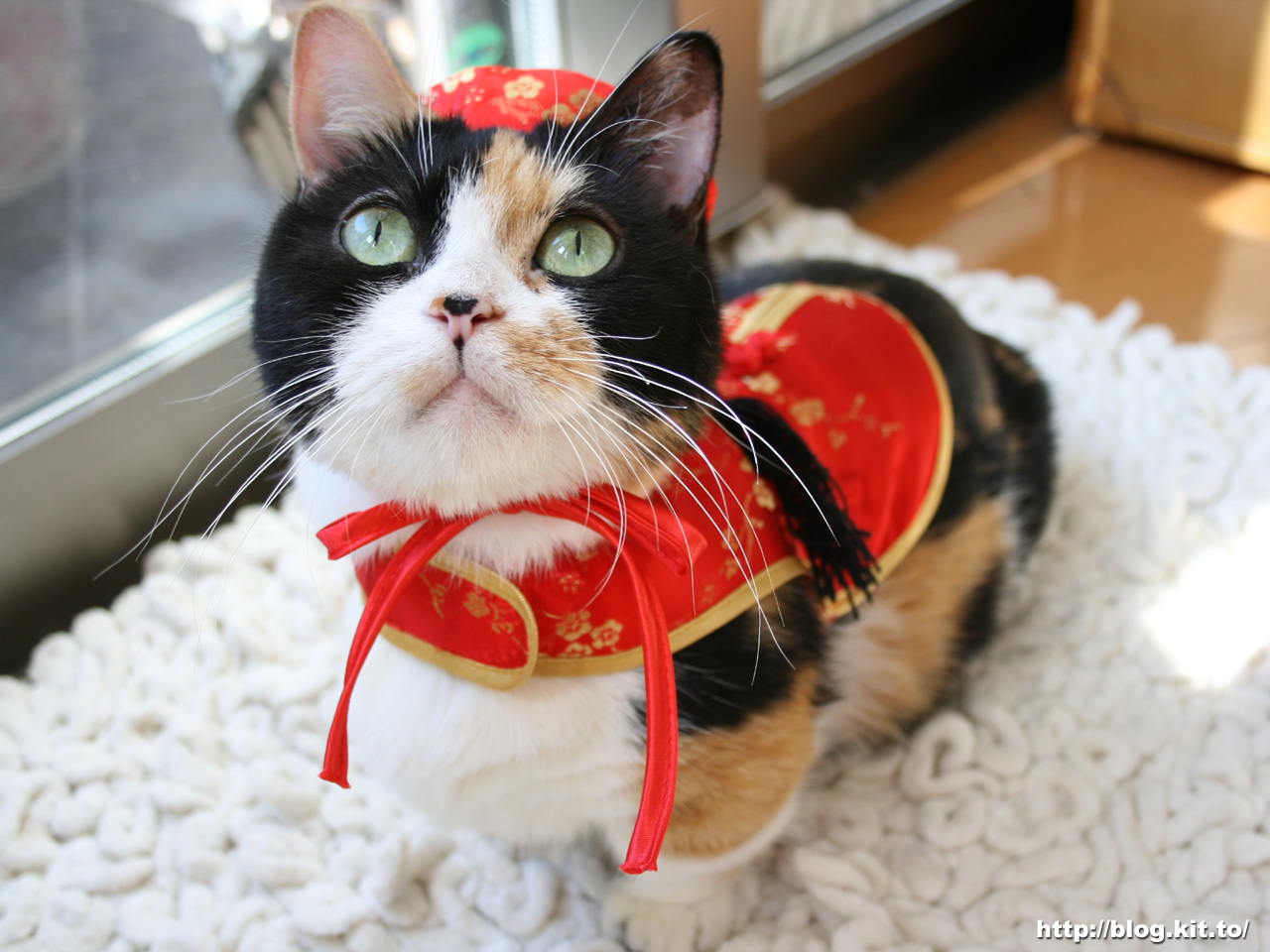 ねここの凛々しいチャイナ服姿、まるで「ラスト・エンペラー」みたいで素敵です。なっちゃんの真っ赤なチャイナ服もラブリーで、ふたりの赤と黒のコントラストがとても美しいわ!図々しいお願いで恐縮ですが、もし機会があったらいつかこの写真の壁紙を作成していただけないでしょうか?